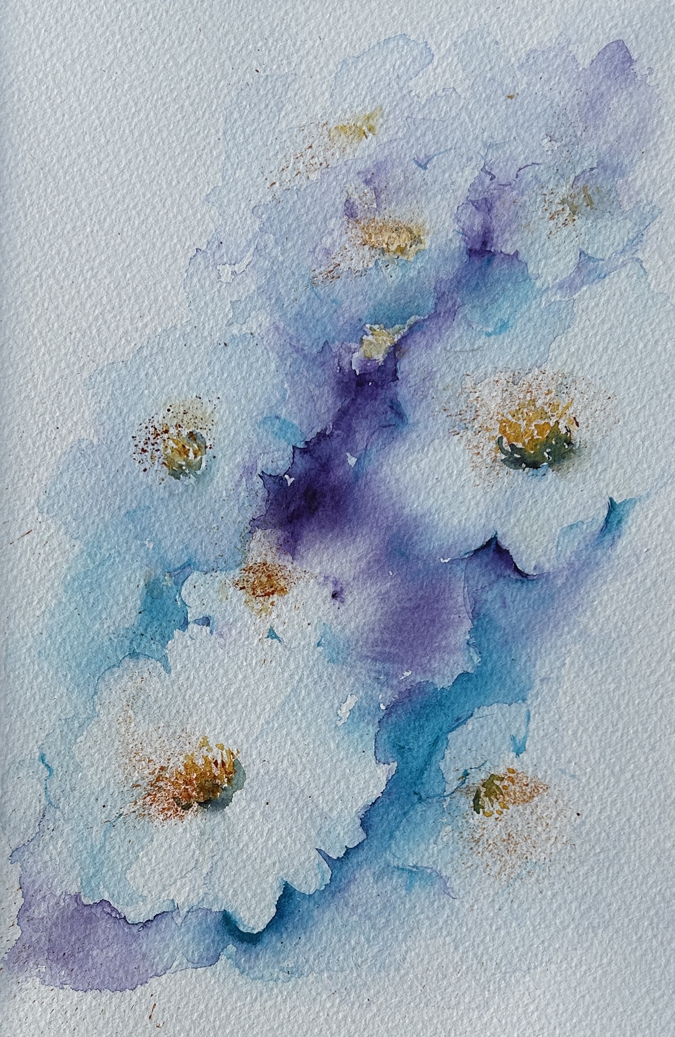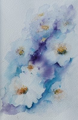 I began my watercolour journey during lockdown, through online tutorials. (Thank you to Jean Haines). I’m inspired by colours, light and texture, and constantly searching for the best way to depict them on paper. I never tire of watching the unpredictable nature of these pigments as they react with water. Much preferring to let the colours mix and blend on the paper, rather than making plans and mixing my colours in a palette. I prefer to paint without any preliminary pencil sketch, letting the painting dictate what is needed.