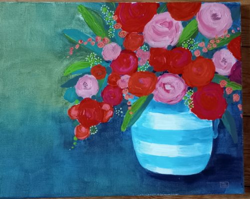I am a mixed media artist with a love of pattern and vibrant colours. I use both abstract and figurative styles to create joyful, imaginative paintings in acrylic, watercolour and gold leaf.